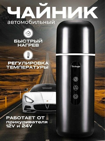 Автомобильный чайник – это незаменимый аксессуар для каждого водителя, который часто находится в пути. Представляем вам универсальный чайник автомобильный, который обеспечивает быстрое и удобное использование как в легковых автомобилях, так и в грузовиках. Автомобильный чайник от прикуривателя – стильный аксессуар в автомобиле, позволяет наслаждаться горячими напитками во время путешествия, на природе и в походе. Чайник в машину выполнен из нержавеющей стали, сохраняет тепло и поэтому может быть использован как автомобильный термос: он сохраняет температуру горячих и холодных напитков. Автомобильный чайник этой модели подходит как для легковых автомобилей (12В), так и для грузовых (24В). Благодаря лаконичному дизайну чайник автомобильный электрический легко помещается в подстаканник автомобиля. Чайник в машину от прикуривателя легко моется, не ржавеет. Электрочайник автомобильный работает от прикуривателя. В данной модели чайника для машины есть удобный ЖК- дисплей, который позволяет нагреть жидкость до нужной Вам температуры от 40 до 100С. Объем чайника автомобильного 12в составляет 400 мл. В чайнике от прикуривателя имеется встроенный магнитный размешиватель, который позволяет легко размешать добавленные сахар, молоко и т. п. одним нажатием кнопки на корпусе. Крышка герметична. Вы можете взять чайник автомобильный 12-24В с собой в дорогу, в офис, на природу или пикник. подогрев его до нужной температуры. Чайник в машину имеет специальное покрытие, которое предотвращает скольжение. Чайник от прикуривателя 12-24В– стильный аксессуар для машина, он станет незаменимым помощником и прекрасным подарком для автолюбителей.