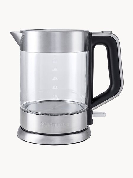 Электрический чайник Kitfort КТ-617 предназначен для кипячения воды дома, в офисах и на дачах. Мощность чайника позволяет использовать его в домах со слабой проводкой. В носик чайника встроен фильтр. Корпус чайника выполнен из стекла, а крышка и подставка - из сочетания пластмассы и нержавеющей стали. Мерная шкала нанесена на прозрачную часть корпуса. Большое горлышко чайника облегчает доступ внутрь при мытье и во время удаления накипи. Ручка чайника пластиковая, не нагревается и удобно лежит в руке. Кнопка открывания крышки расположена сверху на ручке, а кнопка включения - внизу. При включении чайника загорается синяя подсветка, которая является индикатором работы и одновременно художественно подсвечивает кипящую воду.