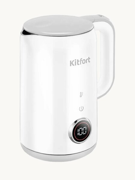Для уютных посиделок Чайник Kitfort КТ-6699 предназначен для кипячения воды дома, в офисе, на даче. Чайник оснащён функцией поддержания температуры в течение 2 часов. Температура воды контролируется встроенным термодатчиком. Выбор температуры нагрева На чайнике расположена панель управления и дисплей. На дисплее отображается текущая температура воды, а при установке — температура нагрева. КТ-6699 может не только вскипятить воду, но и нагреть её до 40, 50, 60, 70, 80, 90 °C. Всё для удобства Корпус чайника и крышка выполнены из пластика, их внутренняя поверхность — из нержавеющей стали. Ручка сделана из пластика, за счёт чего не нагревается, позволяя комфортно пользоваться прибором. Ставьте чайник как хотите! Подставка с центральным контактом даёт возможность располагать на ней чайник в любом положении, обеспечивая вращение на 360°. Перед снятием чайника с подставки дождитесь его автоматического выключения или отключите его, нажав на переключатель.