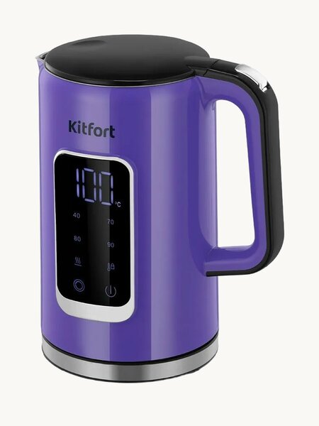 Тепло в каждой кружке Электрический чайник Kitfort КТ-6704 идеально подойдёт для использования для дома, офиса или дачи. Его объёма в 1,7 литра хватит, чтобы угостить горячим чаем всю семью или дружную компанию. Регулировка температуры нагрева На чайнике расположены панель управления и LED-дисплей. КТ-6704 может не только вскипятить воду, но и нагреть её до температуры 40, 70, 80 и 90℃, что очень удобно для заваривания различных сортов чая, кофе или для приготовления детского питания. Поддерживает температуру в течение 2-х часов Чайник также оснащён функцией поддержания температуры воды в течение 2-х часов. Температура контролируется встроенным в дно термодатчиком. На LED-дисплее отображается текущая температура воды в чайнике, а при установке температуры – температура нагрева. Безопасно, удобно и просто! У чайника двойные стенки, благодаря чему вода будет дольше оставаться горячей. Также двойные стенки защищают от ожогов, т. к. почти не нагреваются снаружи. Корпус чайника выполнен из пластика, а внутренняя поверхность из нержавеющей стали. Для вашего комфорта Ручка чайника пластиковая, не нагревается и удобно лежит в руке. Минимальная и максимальная отметки нанесены на внутреннюю поверхность чайника. Кнопка, открывающая крышку, расположена на ручке чайника. Ничего лишнего! Подставка с центральным контактом даёт возможность располагать на ней чайник в любом положении, обеспечивая вращение на 360°. Снизу имеется отсек для хранения шнура, в который можно смотать излишки шнура электропитания. Чайные традиции у вас дома! Стильный чайник КТ‑6704 станет украшением вашей кухни. Прибор закипает за 6 минут — вы сможете быстро приготовить любимый чай или кофе. Модель оснащена функцией автоматического отключения для вашей безопасности и удобства.