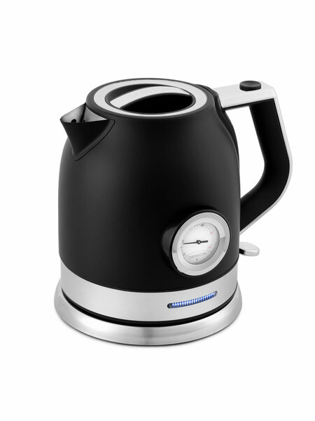 Достоинства:внешне выглядит очень стильно Недостатки:не особо недостаток для меня, но не очень удобно, что отсутствует возможность проверить уровень воды в чайнике. Комментарий:чайник очень понравился, давно планировала заменить старый надоевший чайник на новый, остановилась на чайнике данной марки. что понравилось: внешний вид, матовая черная поверхность смотрится очень стильно, наличие окошечка с термометром также украшает его. Работает довольно бесшумно, по крайней мере, предшественник шумел гораздо громче. кнопка подогрева нажимается плавно, при нажатии внизу чайника загорается синяя подсветка (смотрится очень интересно). Уровень воды не посмотреть, но для меня это не проблема, хотя кому-то может показаться неудобным. В общем, не знаю, как будет дальше, но пока чайником очень довольна, удачно вписался в кухонную обстановку и внешне подошёл по стилю к другой технике