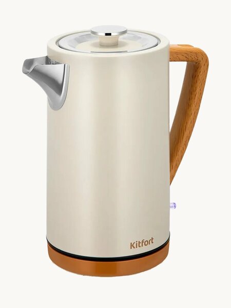 Для уютных посиделок Электрический чайник Kitfort КТ-8715 предназначен для кипячения воды дома, в офисе, на даче. Чайник автоматически отключается при закипании, имеет защиту от перегрева и от включения без воды. Ручка чайника удобно лежит в руке и не нагревается. Всё для удобства Корпус чайника и крышка выполнены из нержавеющей стали и пластика, подставка — только из пластика. Мерная шкала находится за ручкой. Защита от накипи Конструкция чайника препятствует образованию накипи, облегчает уход и значительно снижает шум при нагревании воды. Нагревательный элемент у данной модели скрытый и находится в донной части. Сверху он закрыт металлической пластиной из нержавеющей стали. Вращение на все 360! Подставка с центральным контактом даёт возможность располагать на ней чайник в любом положении, обеспечивая вращение на 360°. Крышка чайника снимается, что облегчает уход за прибором.