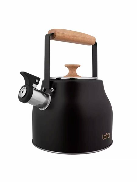 Чайник LARA отличается надежностью и изысканностью, так как изготовлен из нержавеющей стали высокого качества. Окрашен в элегантный черный матовый цвет, который добавит изящества в ваш кухонный интерьер. Ручка изделия совмещает в себе дерево и металл, что обеспечивает удобный и надежный хват, а также защиту от ожогов, так как не нагревается во время использования. Данный чайник можно использовать на любой плите, включая индукционную. Встроенный свисток с удобным курковым механизмом оповестит вас о том, что вода закипела. Уникальный дизайн делает его не просто удобным кухонным прибором, но и стильным элементом сервировки вашего стола. Чтобы сохранить изначальное состояние изделия и продлить его срок службы, рекомендуется мыть его вручную. Производитель предоставляет гарантию товар 12 месяцев.
