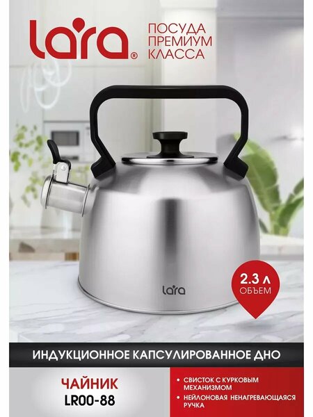 Классический чайник LARA выполнен из высококачественной пищевой нержавеющей стали, что предотвращает коррозию и окисление, обеспечивая долговечность и безопасность использования. Ручка и крышка чайника покрыты жаропрочным нейлоном, что добавляет дополнительную защиту и удобство, предотвращая нагревание. Капсульное дно ускоряет процесс кипячения воды, экономя ваше время и энергию. Благодаря универсальному дизайну, чайник подходит для всех типов плит, включая индукционные. С объемом 2,3 литра, он идеально подходит как для повседневного использования, так и для чаепитий с гостями. Встроенный свисток с курковым механизмом оповещает о закипании воды, добавляя практичности. Долговечность и экологичность делают этот чайник отличным помощником на кухне, сочетая безопасность, уникальный дизайн и высокую надежность. Этот чайник станет неотъемлемой частью вашего кухонного арсенала.