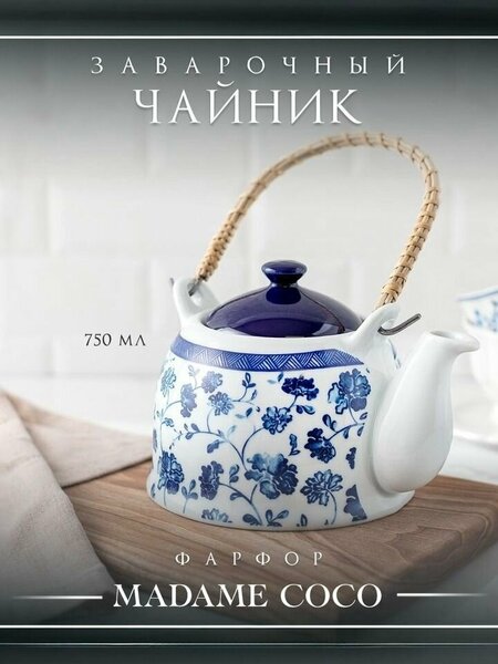 Представляем вашему вниманию изысканный фарфоровый заварочный чайник от MADAME COCO. Этот чайник станет не только практичным элементом вашего чаепития, но и элегантным дополнением к вашей кухонной утвари. Объем 750 мл идеально подходит для заваривания чая как для одиночных чаепитий, так и для встреч с друзьями и близкими. Чайник подчеркивает утонченность и стиль, делая каждое чаепитие особенным. Фарфоровый материал обеспечивает равномерное распределение температуры, что способствует лучшему раскрытию аромата и вкуса вашего любимого чая. Благодаря классическому дизайну, этот заварник легко впишется в любую кухонную обстановку, добавляя ноту роскоши и женственности. Мы уверены, что этот заварочный чайник идеально выполнит свою функцию, обеспечивая вам наслаждение от каждого глотка чая. Его широкое горло облегчит процесс наполнения и очистки, а хорошо продуманный носик обеспечит точный налив, не давая чаю пролиться. Используйте его для заваривания черного, зеленого или травяного чая – каждый раз вы будете получать насыщенный и ароматный напиток. Заварочный чайник станет отличным подарком для любителей чая и ценителей качественной посуды. Кроме того, он гармонично дополнит ваш сервиз и станет изюминкой любого стола. Не упустите возможность добавить к своему домашнему уюту этот стильный и функциональный аксессуар. Создайте атмосферу тепла и уюта в вашем доме с помощью этого прекрасного чайника.
