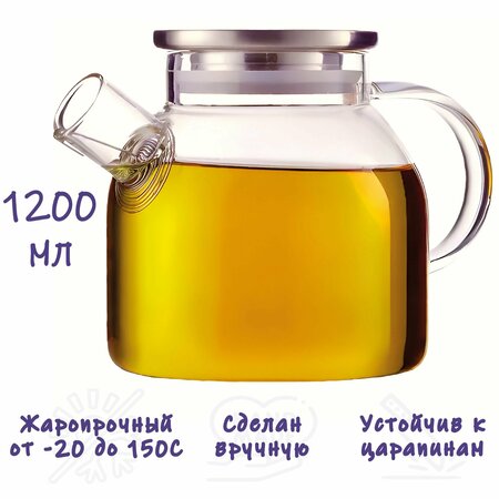 Заварочный чайник станет незаменимым спутником в кулинарных приключениях, разделяя с вами не только радость готовки, но и добавляя уникальное настроение. Эта оригинальная посуда придаст не только аппетитный вид вашим блюдам, но и создаст уютный элемент декора на вашей кухне. Стеклянный заварочный чайник легко впишется в любой интерьер, становясь стильным и лаконичным аксессуаром. Очаровательный заварник чайника позволяет наслаждаться зрелищем движения чаинок и легким контролем интенсивности заваривания по цвету. Благодаря этому, чайник становится прекрасным объектом для фото и видеосъемки, делая ваши моменты в социальных сетях неповторимыми. Удобный носик и ручка делают использование этого стеклянного заварочного чайника максимально комфортным. Этот термостойкий чайник снабжен фильтром, делая его идеальным для использования дома, на работе или в кафе. Стеклянная посуда с ситечком гарантирует, что ваш чай будет чистым и без малейших следов чаинок. Изготовленный из стекла, чайник подходит для различных видов чая, а также травяных, фруктово-ягодных напитков, какао и кофе. Этот абсолютно инертный материал не взаимодействует с содержимым, сохраняя вкус и аромат напитка, и не подвержен воздействию кислот. Стеклянный чайник также может использоваться для подогрева молока и приготовления бульонов. Металлические элементы изготовлены из пищевой нержавеющей стали AISI 304, обеспечивая высокую антикоррозионную устойчивость. Крышка чайника может быть бамбуковой с металлической накладкой или полностью из нержавеющей стали, обеспечивая надежную защиту от вредного воздействия влаги. Особенность стеклянной посуды для заваривания чая заключается в ее простоте ухода. Налет и накипь не задерживаются на поверхности, и посуда легко моется, не подвергаясь царапинам от губки. Химически нейтральный оксид бора не вступает в реакцию с другими соединениями, что делает эту посуду долговечной и сохраняющей свой внешний вид даже после многих лет использования. К тому же, прозрачная посуда долго сохраняет температуру напитка, что особенно приятно, если вы случайно забыли о заваренном чае.