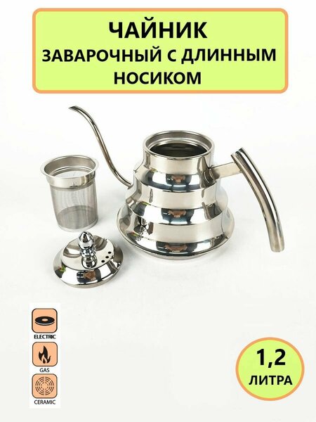 Наслаждайтесь исключительным кофе или чаем дома, заваренном в турецком чайнике 2в1. Вы будете выглядеть как профессионал, пока будете варить напитки в чайнике из высококачественной нержавеющей стали с носиком в виде гусиной шеи для устойчивого потока воды. Удлиненный капельный носик у заварочного чайника/кофейника объемом 1, 2 литра очень долго прослужит любителям чая и свежесваренного кофе, и поможет контролировать процесс заваривания путем пролива воды, что обеспечивает правильную экстракцию (извлечение вкуса), а сам напиток получается более ароматным и насыщенным. Это первый чайник заварочный металлический с уникальным трехслойным основанием, поэтому он работает на всех плитах и остается без ржавчины и безопасным в течение десятилетий. Чайник для заваривания и кофейник станет отличным дополнением для любого кухонного интерьера. Также дополнительным удобством является то, что у чайник с длинным носиком очень удобная конструкция с изолированной эргономичной ручкой, ваши руки никогда не подвергнутся ожогам. Пейте лучший кофе и чай, радуйте своих родных и близких оригинальным подарком в виде такого турецкого чайника с ситечком. Так же заварной чайник металлический прекрасно подойдет для заваривания чая на самоваре. Поиск кофе и чая, который заставляет вас улыбаться, заканчивается здесь.
