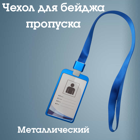 Чехол для бейджа Dechuang Stationery, металл, синий, с зажимом, 43 см