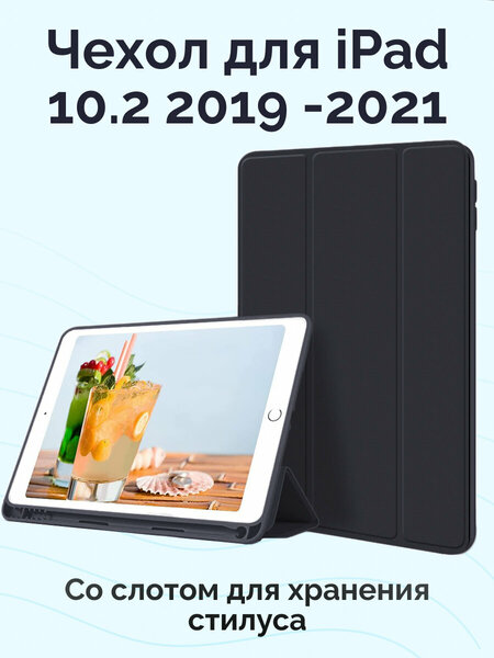 Чехол книжка для iPad 9 10.2 2021 / iPad 8 10.2 2020 / iPad 7 10.2 2019 / A2197, A2200, A2198, A2270, A2428, A2429, A2430 / Чехол на iPad 10.2 / держатель для стилуса, подставка для планшета / Viva черный