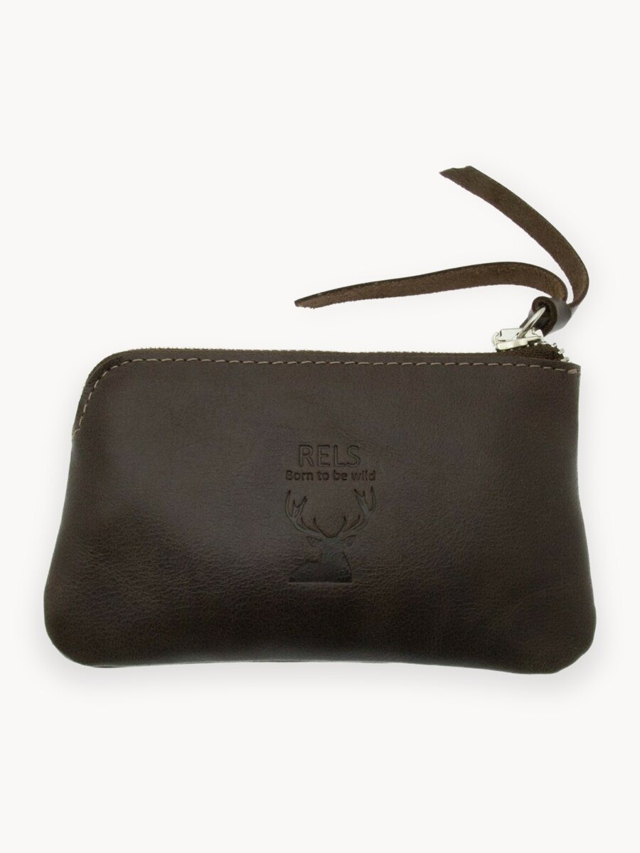 Чехол для ключей (Ключница), модель Collie (Колли), коллекция Wild. Изготовлена из натуральной кожи. Цвет: рыжий. Сорт кожи: "Друид". В изделии предусмотрено 2 кармана на металлической молнии. Одно основное для хранения ключей на двух кольцах, скреплённых между собой цепочкой. И второе дополнительное, для хранения пластиковых карт или визиток, оно так же может использоваться как карман для мелочи или сложенных бумажных купюр. Габариты изделия в закрытом виде: 130x80x20 миллиметров. Упаковка: подарочная коробка Rels wild collection из плотного картона коричневого цвета.