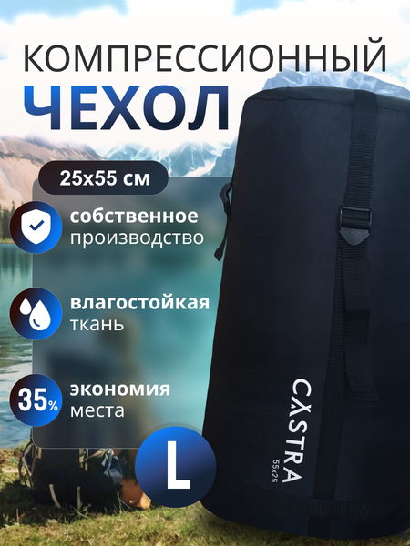 Компрессионный мешок для туристического снаряжения Castra L 55x25x25 см, черный