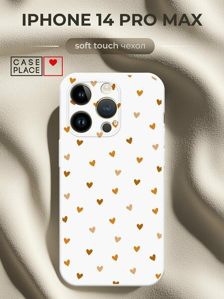 Чехол на Apple iPhone 14 Pro Max / Айфон 14 Про Макс с принтом "Бежевые сердечки паттерн"