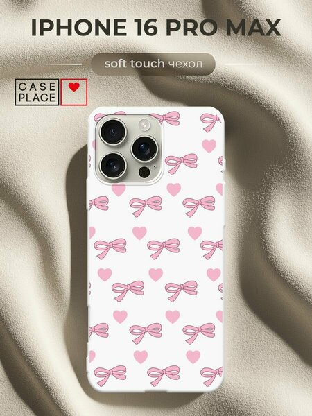 Чехол на Apple iPhone 16 Pro Max / Айфон 16 Про Макс с принтом "Бантики и сердечки"