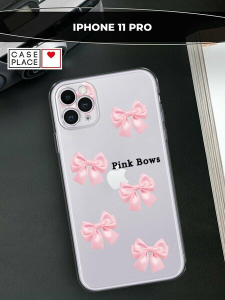 Чехол на Apple iPhone 11 Pro / Айфон 11 Про с принтом "Pink Bows", прозрачный