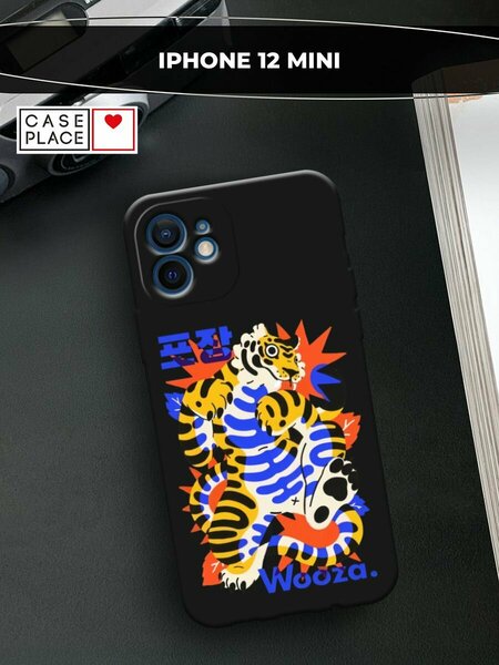 Черный матовый чехол на Apple iPhone 12 mini / Айфон 12 Мини с принтом "Wooza"