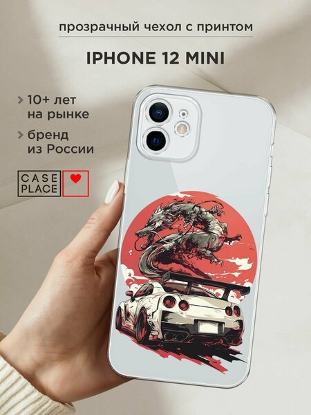 Чехол на Apple iPhone 12 mini / Айфон 12 Мини с принтом "Car and dragon", прозрачный