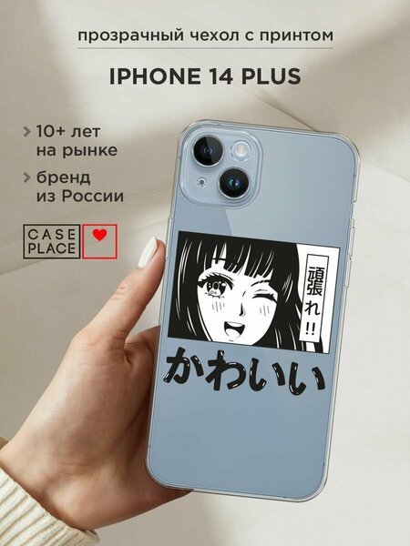 Чехол на Apple iPhone 14 Plus / Айфон 14 Плюс с принтом "Cute anime girl", прозрачный