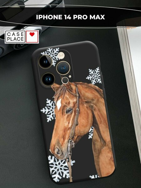 Чехол на Apple iPhone 14 Pro Max / Айфон 14 Про Макс с принтом "Конь и снежинки 2"