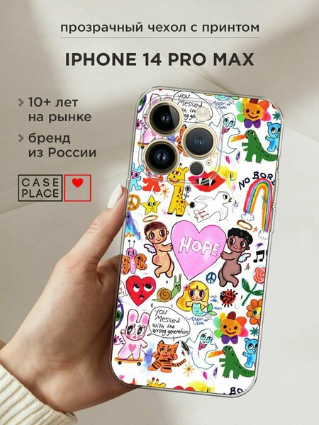 Чехол на Apple iPhone 14 Pro Max / Айфон 14 Про Макс с принтом "Милые рисунки"