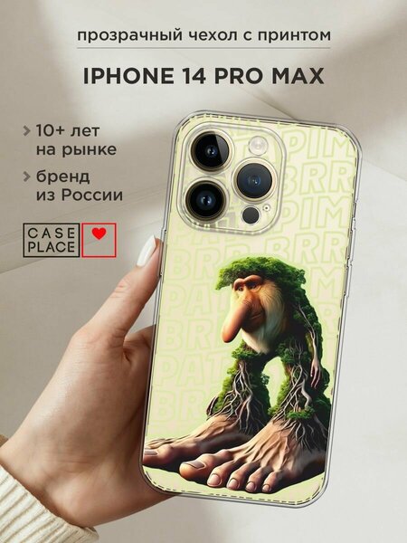 Чехол на Apple iPhone 14 Pro Max / Айфон 14 Про Макс с принтом "Брр брр патапим 2", прозрачный
