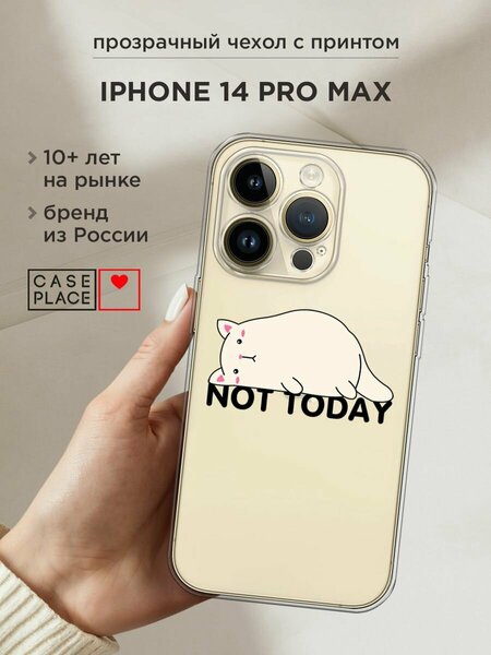 Чехол на Apple iPhone 14 Pro Max / Айфон 14 Про Макс с принтом "Cat not today", прозрачный