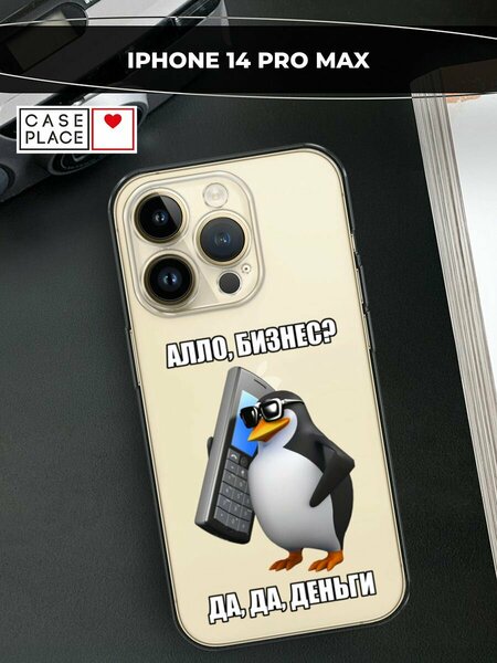 Чехол на Apple iPhone 14 Pro Max / Айфон 14 Про Макс с принтом "Алло, бизнес?", прозрачный