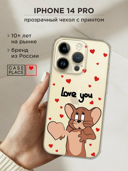 Чехол на Apple iPhone 14 Pro / Айфон 14 Про с принтом "love you Джерри 1", прозрачный