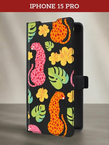Чехол-книжка на Apple iPhone 15 Pro / Айфон 15 Про с принтом Экзотика