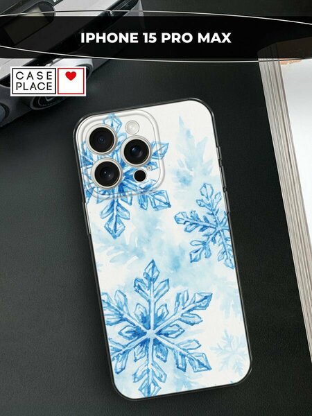 Чехол на Apple iPhone 15 Pro Max / Айфон 15 Про Макс с принтом "Акварельные снежинки"
