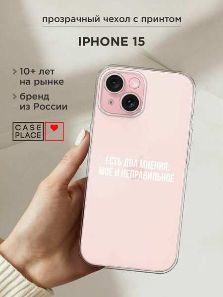 Чехол на Apple iPhone 15 / Айфон 15 с принтом "Два мнения", прозрачный