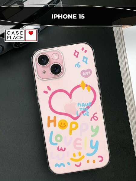 Чехол на Apple iPhone 15 / Айфон 15 с принтом "Happy lovely", прозрачный