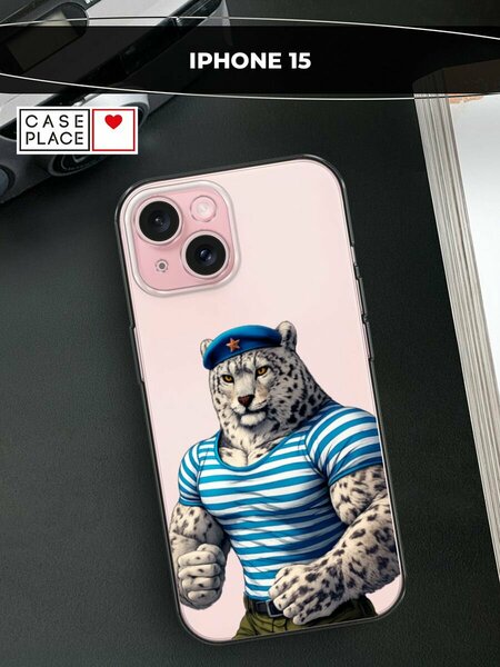 Чехол на Apple iPhone 15 / Айфон 15 с принтом Барс-десантник, прозрачный