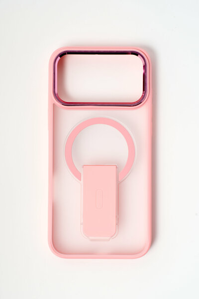 Чехол на Айфон 17 Про Макс (iPhone 17 Pro Max) с поддержкой беспроводной зарядки и подставкой, розовый