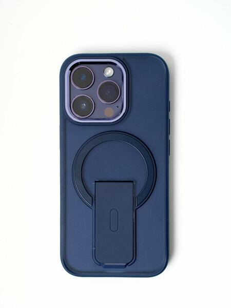 Чехол на Айфон 16 Про (iPhone 16 Pro) с поддержкой беспроводной зарядки и подставкой, синий
