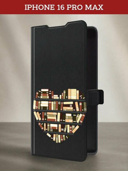 Чехол-книжка на Apple iPhone 16 Pro Max / Айфон 16 Про Макс с принтом Книги в сердце, черный