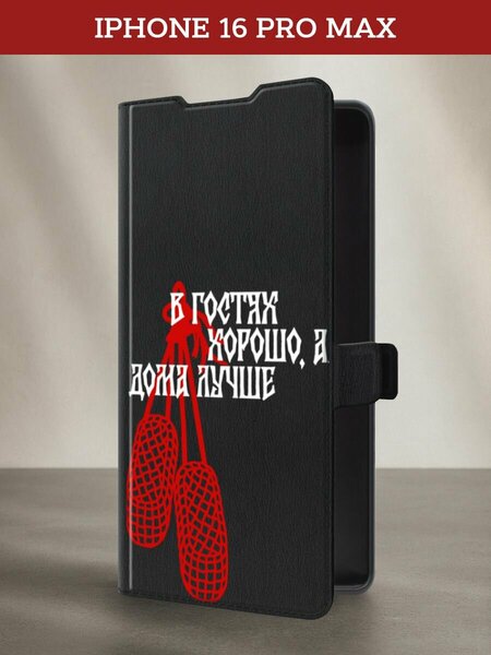 Чехол-книжка на Apple iPhone 16 Pro Max / Айфон 16 Про Макс с принтом В гостях хорошо 2, черный