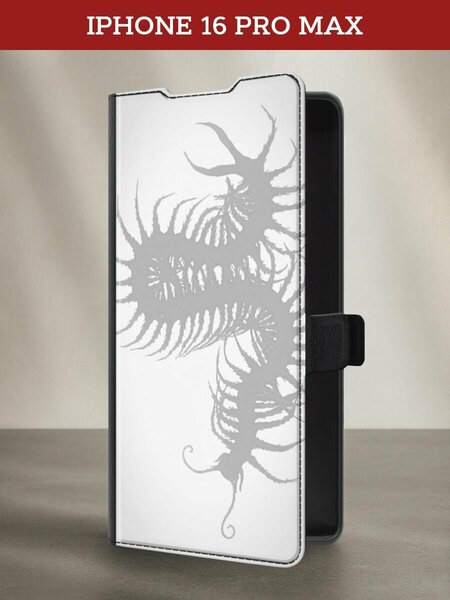 Чехол-книжка на Apple iPhone 16 Pro Max / Айфон 16 Про Макс с принтом Серая многоножка, черный