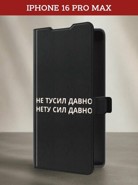 Чехол-книжка на Apple iPhone 16 Pro Max / Айфон 16 Про Макс с принтом Нету сил давно, черный