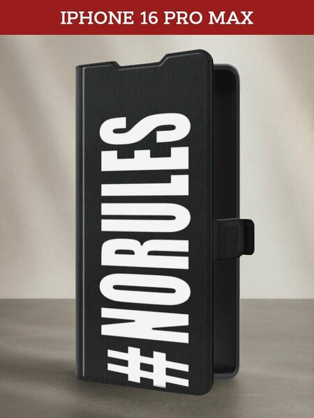 Чехол-книжка на Apple iPhone 16 Pro Max / Айфон 16 Про Макс с принтом #NoRules, черный