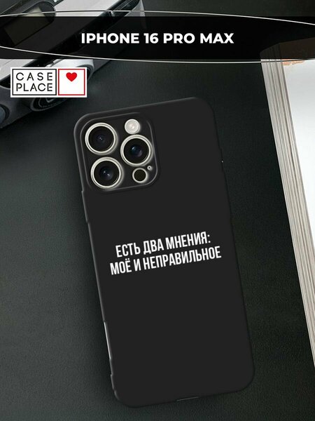 Черный матовый чехол на Apple iPhone 16 Pro Max / Айфон 16 Про Макс с принтом "Два мнения"