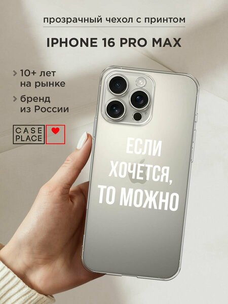 Чехол на Apple iPhone 16 Pro Max / Айфон 16 Про Макс с принтом "Если хочется", прозрачный