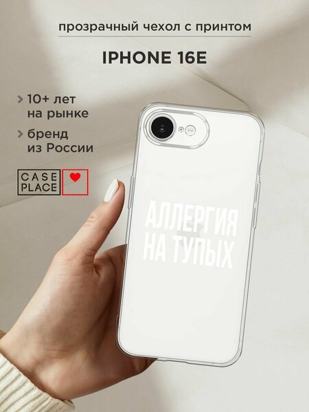 Чехол на Apple iPhone 16e / Айфон 16е с принтом "Аллергия на тупых", прозрачный