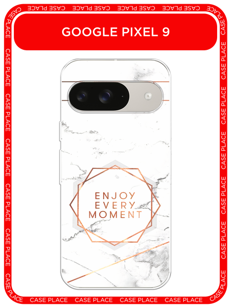 Чехол на Google Pixel 9 / Гугл Пиксель 9 с принтом Enjoy every moment мрамор