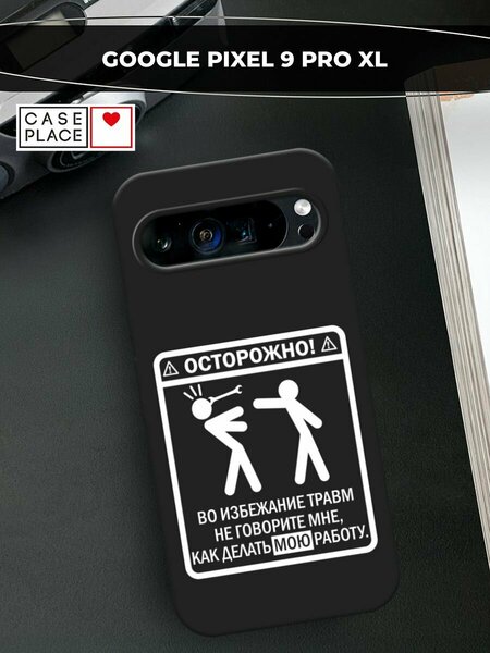 Черный матовый чехол на Google Pixel 9 Pro XL / Гугл Пиксель 9 Про XL с принтом "Осторожно белый"