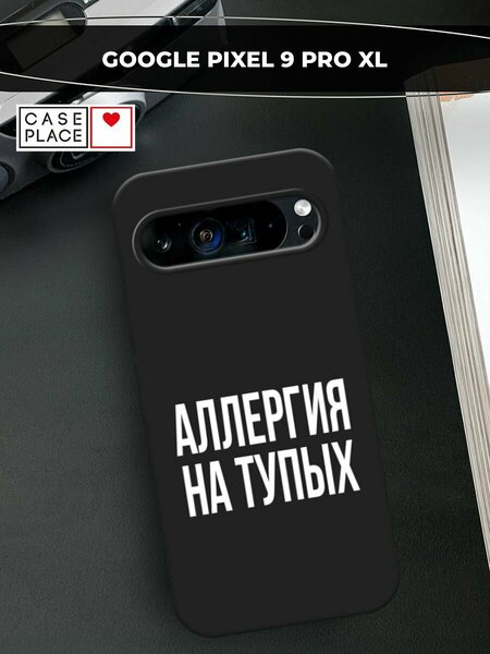 Черный матовый чехол на Google Pixel 9 Pro XL / Гугл Пиксель 9 Про XL с принтом "Аллергия на тупых"