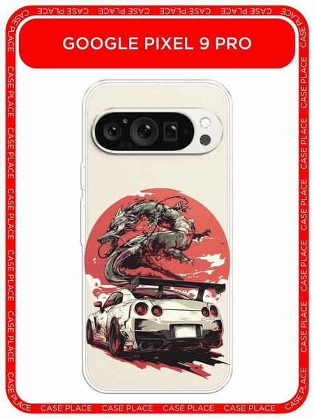 Чехол на Google Pixel 9 Pro / Гугл Пиксель 9 Про с принтом "Car and dragon", прозрачный