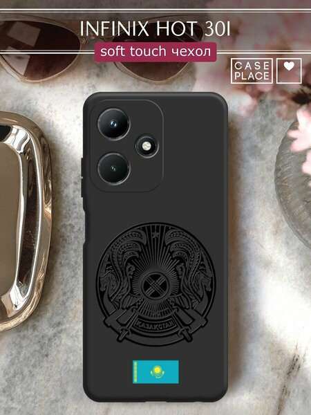 Чехол на Infinix Hot 30i / Инфиникс Хот 30i с принтом "Герб и флаг Казахстана"