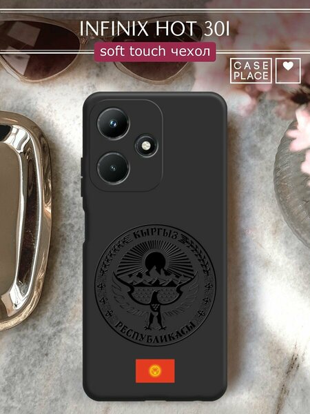 Чехол на Infinix Hot 30i / Инфиникс Хот 30i с принтом "Герб и флаг Кыргызстана"