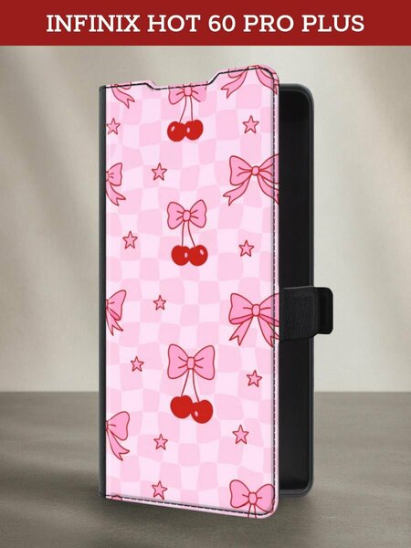 Чехол-книжка на Infinix Hot 60 Pro / Инфиникс Хот 60 Про с рисунком Вишенки и бантики, черный