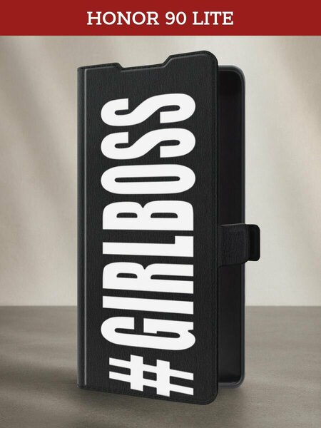 Чехол-книжка на Honor 90 Lite / Хонор 90 Лайт с принтом #GirlBoss, черный